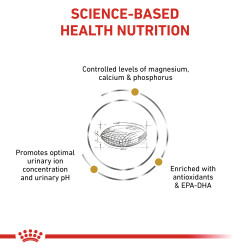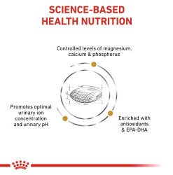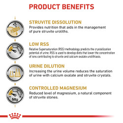 Promotes the dissolution of struvite stones in the urinary tract, helps dilute urine and prevent the formation of struvite and calcium oxalate, struvite stones dissolve with the Urinary S/O diet for 5-12 weeks.